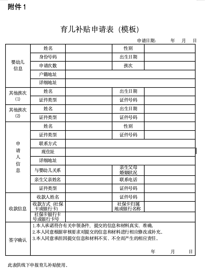 附件:1.育儿补贴申请表(模板)