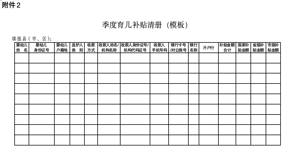 2.季度育儿补贴清册(模板)